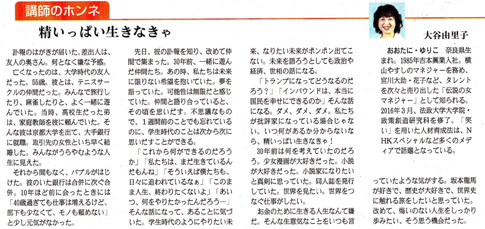 新聞のコラム執筆の他、テレビ・ラジオなどでも活躍中。